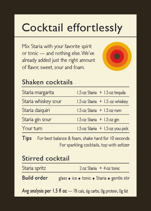 Mix Staria with your favorite spirit or tonic. Swap the base for something new. Here are a few bright ideas to get you started.